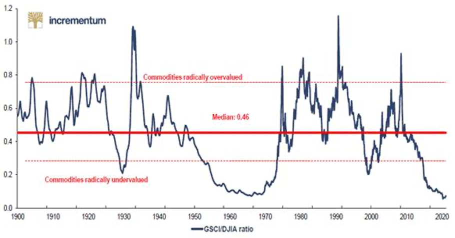 GSCI / DJIA ratio (01/1900 – 02/2021)